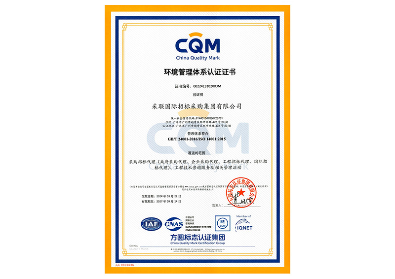 • 環境管理體系認證ISO14001