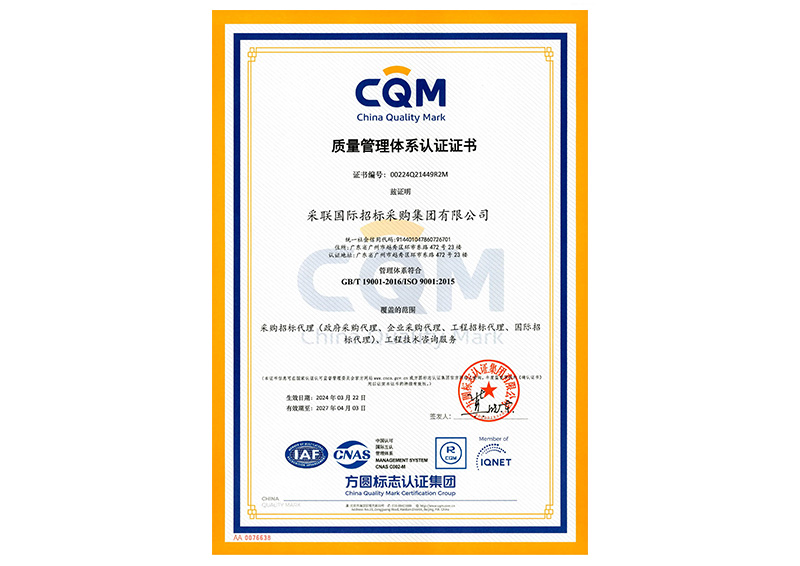 采聯集團致力于為廣大客戶提供采購全流程專業服務,堅守“守正出奇”的核心價值觀,以公平公正為原則,不斷優化服務、堅持創新發展。依托多元化、專業化的服務,不斷向“締造最具創新力的采購服務品牌,構筑采購領域最專業的資源交互平臺”的遠大愿景邁進。