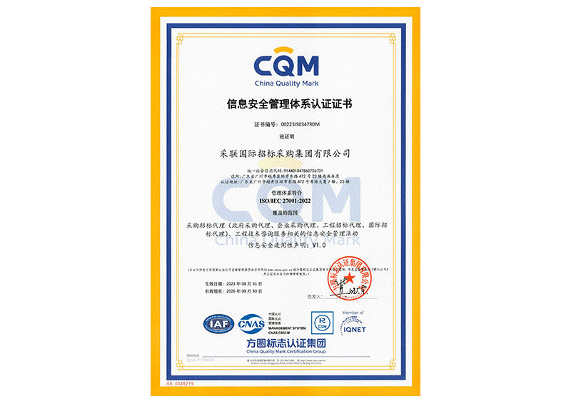 • 信息安全管理體系認證ISO27001